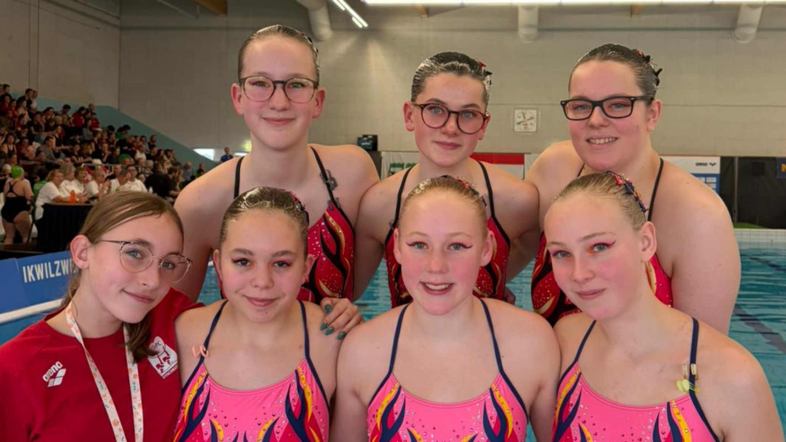 Volgend jaar gaan we werken aan nóg meer artistieke verfijning om hoger te kunnen eindigen. Maar voor nu overheerst één gevoel: Wij zijn ontzettend trots op al onze zwemsters. Het team bestond uit: Marleen, Mireille, Kyara, Wendy, Larissa, Femke en natuurlijk ook uitvaller Doutzen.