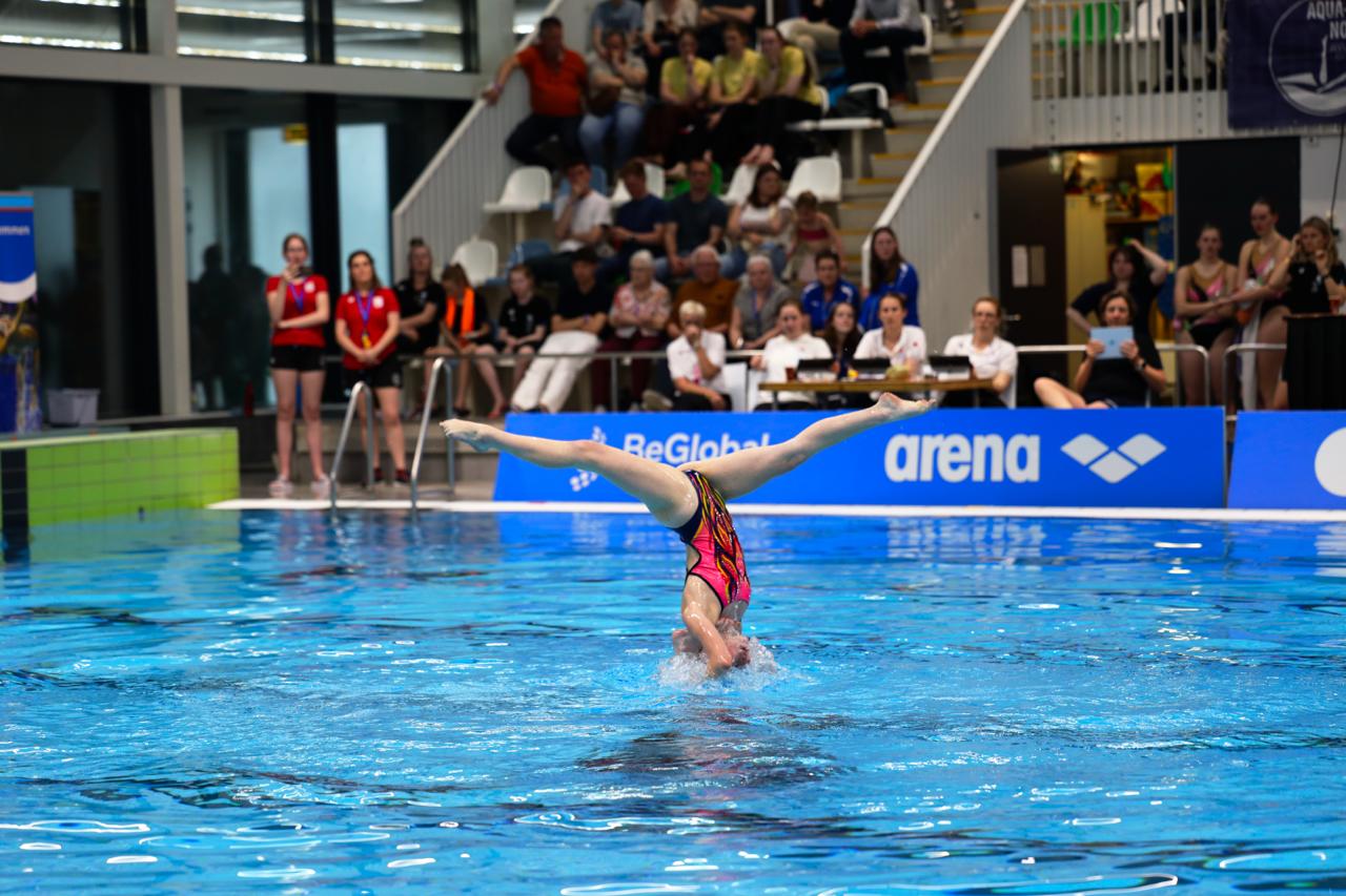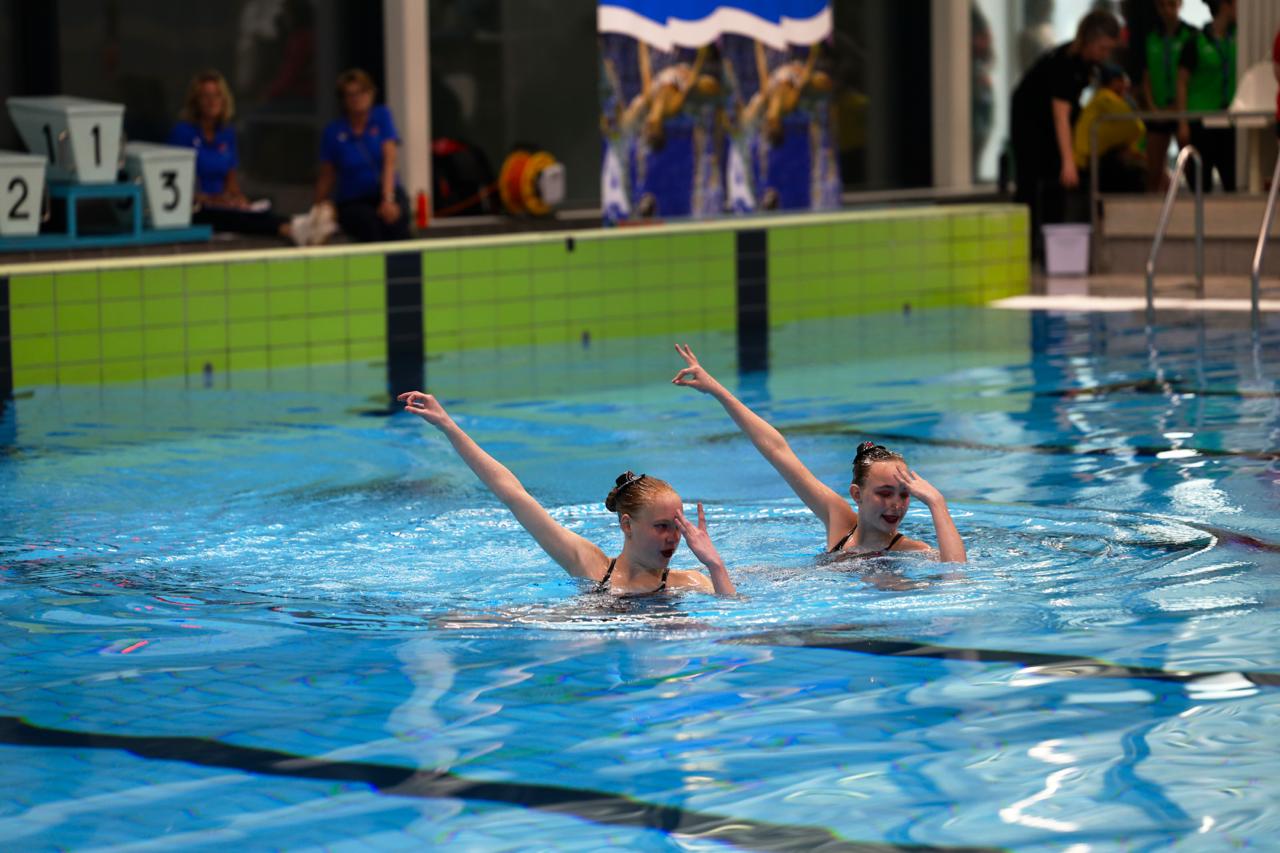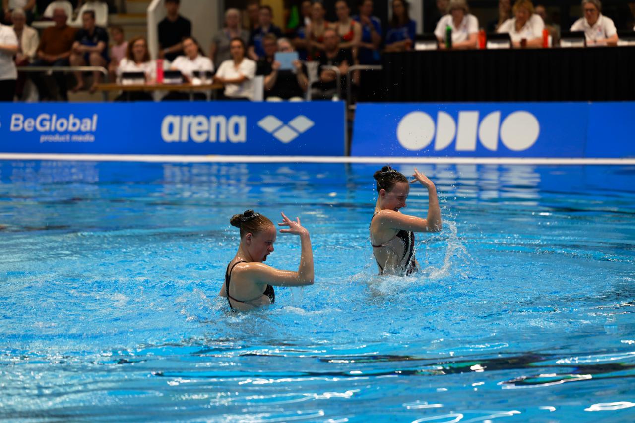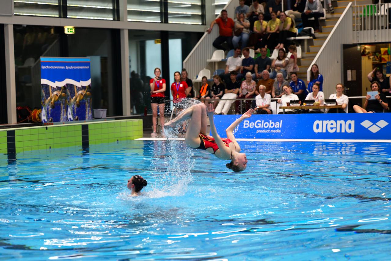 Aansluitend was het de beurt aan het duet van Doutzen Werkman en Mireille Krist. Voor dit kersverse duo betekende het hun wedstrijddebuut – en dat meteen op nationaal niveau. Op energieke muziek van Michael Jackson lieten zij een krachtige en overtuigende uitvoering zien. Een klein foutje had invloed op de eindscore, maar dat deed weinig af aan de tevredenheid bij zowel de zwemsters als de trainers. Het optreden biedt een solide basis om de komende periode verder op voort te bouwen, met het oog op de volgende wedstrijd in juni.