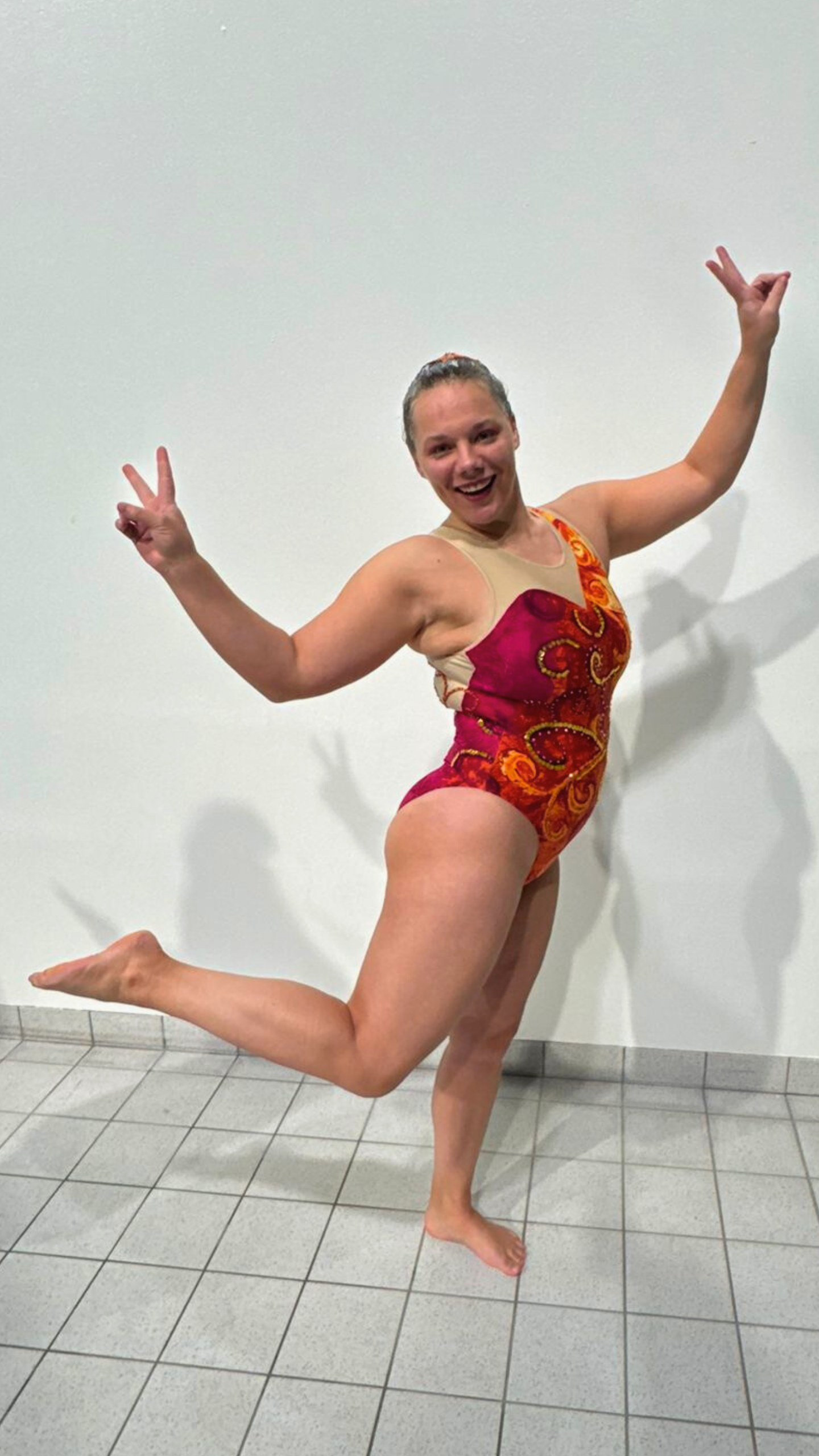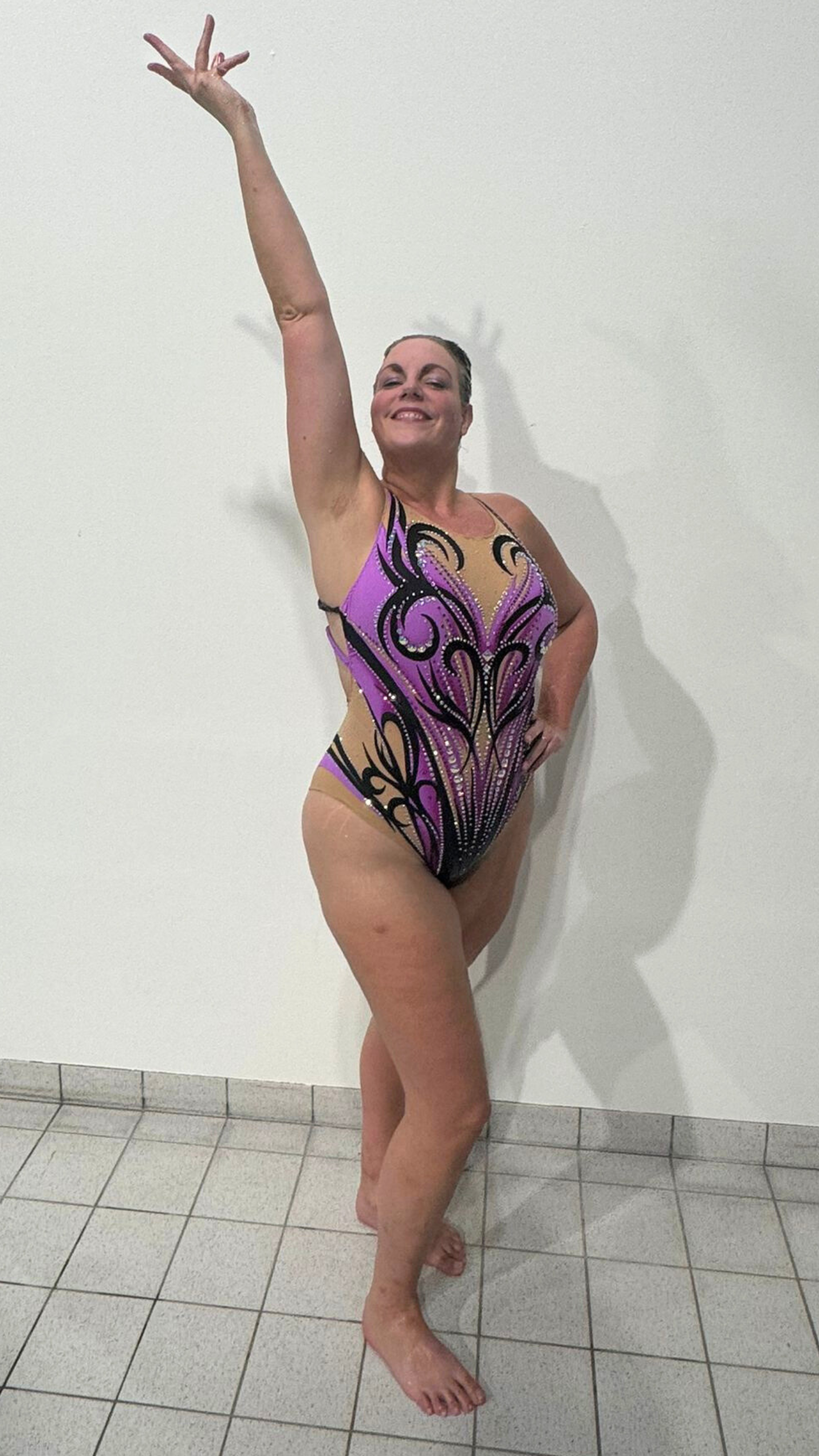 Daarna was het tijd voor de solo’s: Moniek zwom een nette kür en behaalde 58.1333 punten. Rianne volgde in deel twee met een sterke kür en haalde 58.900 punten. Na afloop hebben we natuurlijk de gelatine uit ons haar gespoeld (altijd een feestje 🙃) en zijn we met z’n allen gezellig uit eten geweest om het weekend af te sluiten.