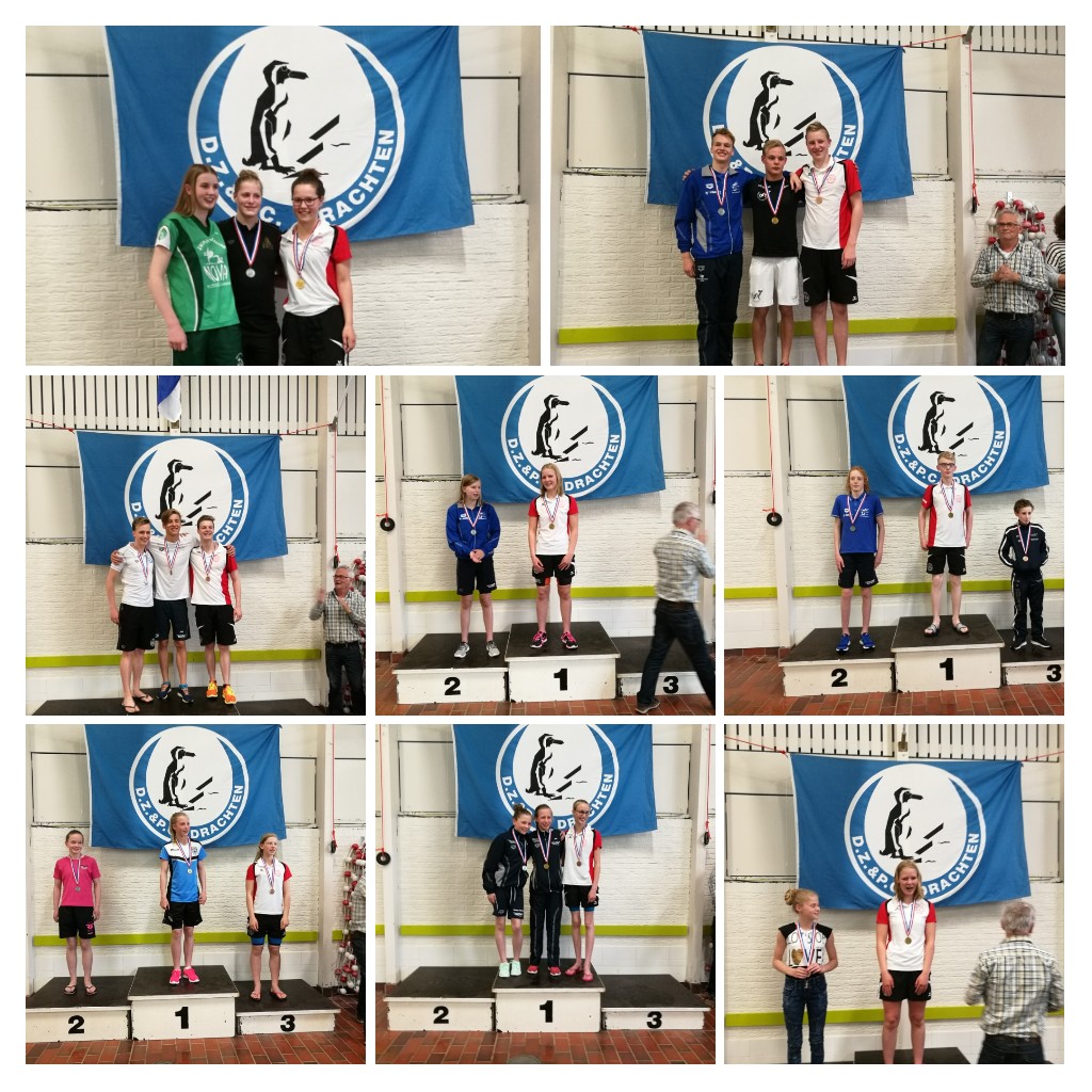 Dag 1 van de Regiokampioenschappen Lange Baan in Drachten zit er weer op. Rond half 5 vanmiddag begon dag 1 van het driedaagse kampioenschap Lange baan in Drachten. Tijdens dit weekend strijden de zwemmers uit de drie noordelijke provincies tegen elkaar. En wat is er weer hard gezwommen. Het toernooi ging van start met de 400 meter vrije slag voor de dames en de heren. Marlies en Charley zwommen deze 400 meter voor het eerst op een lange baan met mooie tijden respectievelijk 5.31.00 en 5.48.42. Christien zwom 5.03.05 en Lianne 4.53.73. Meindert zwom van 5.12.18 naar 4.58.58 en deze tijd was naast de eerste plaats op de Regio ook nog eens goed voor een NJJK limiet. Daarna was de 100 meter schoolslag. Jorian zwom de 100 meter school voor de eerste keer in een lang bad met een mooie tijd van 1.22.46 en Erwin zwom van 1.11.17 naar 1.10.94. Deze tijd was goed voor een vijfde plaats en een uitlooplimiet voor het NJJK. Thomas 1.14.45 en Daan Zwertbroek 1.06.97. Daan behaalde hier een zilveren medaille mee. Leonie zwom van 1.23.02 naar 1.22.56, Amber zwom 1.32.25 en Anna zwom een tijd van 1.30.03 wat goed bleek te zijn voor een bronzen medaille, Arianne 1.29.77 en dit leverde ook haar een mooie derde plaats op. Liesette zwom met haar 1.27.52 naar goud. Tijdens de 200 rug zwommen Amber en Anna deze voor de eerste keer in een lang bad. Met de 100 meter school nog in hun benen verschenen zij aan de start. Amber zwom 3.04.90 en Anna zwom 3.04.75. Charley, die deze dag min of meer ziek aan het toernooi begon zwom net wat boven haar pr, haar tijd was 3.04.85. Chiara zwom 2.43.25, Remco zwom 2.30.67 en Meindert zwom een pr van ruim 5 seconden en kwam daarmee op 2.38.32. De laatste afstand van deze middag was de 50 meter vlinderslag. Femke zwom van 30.71 naar 30.13 wat een gouden medaille opleverde en Remco behaalde ook een pr. van 30.47 naar 29.66. Liesette zwom 31.68 en ook hier mocht zij weer een gouden medaile in ontvangst nemen, Thomas 29.94, Dennis 27.67 en Denny 27.29. Kijkend naar dit mooie begin; wat zou de rest van het weekend brengen?