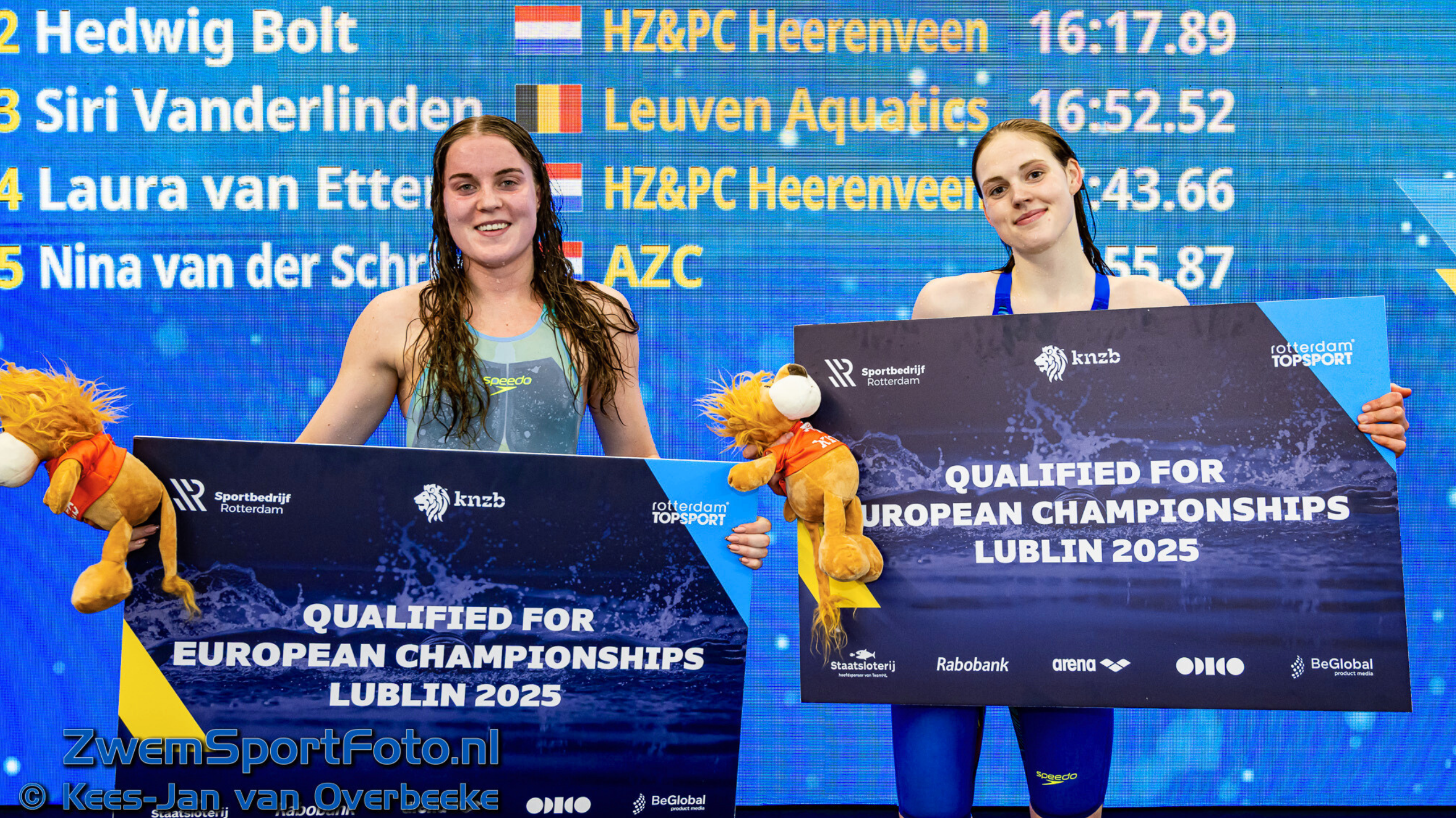 De apotheose kwam op zondag, tijdens de 1500 meter vrije slag. Daar zette Van der Kamp haar dominante vorm kracht bij met een sensationele race, waarin ze opnieuw onder het EK-limiet dook – haar derde kwalificatie voor Lublin. Met een van de snelste tijden ooit gezwommen door een Nederlandse vrouw, schuift zij op naar de tweede plaats op de Nederlandse all-time ranglijst, direct achter Olympisch kampioene Sharon van Rouwendaal. In dezelfde finale realiseerde Hedwig Bolt haar ultieme doel: met een gigantisch persoonlijk record dook ook zij ruimschoots onder het EK-limiet. Daarmee verzekerde zij zich van haar eerste EK-ticket – een prachtig moment voor de 21-jarige zwemster uit Joure.